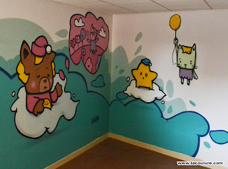 Peinture murale dans le "coin dodo" d'une école maternelle.