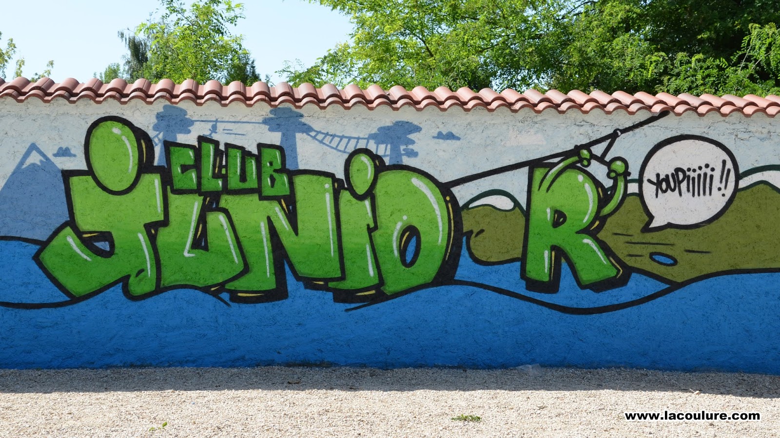 Les jeunes de l'accueil de loisirs de Cessieu (38) ont de la chance! Ils ont put graffer le mur de leur cours et y faire ce qu'ils voulaient. Encadrés par un des graffeurs du collectif (Reno) ils ont eu une semaine pour s'attaquer au mur bombe à la main.